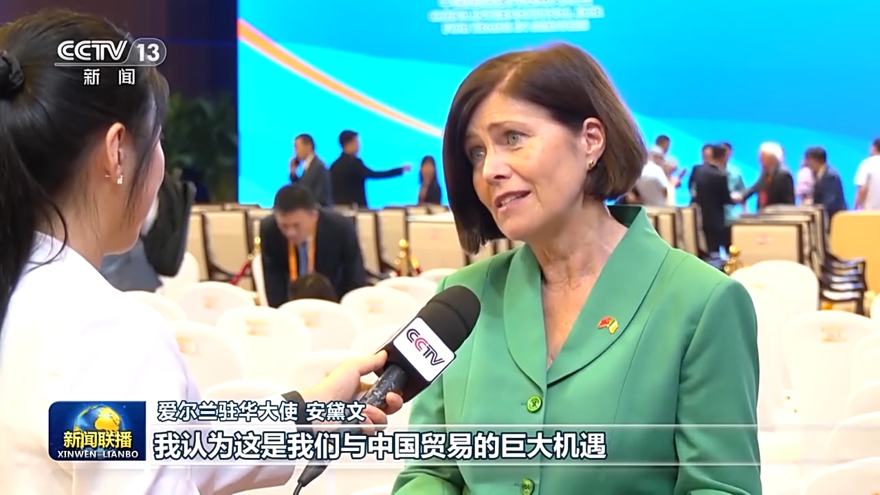 爱尔兰驻华大使 安黛文:习主席谈到了开放的重要性以及中国对开放的坚定承诺,我认为这是我们与中国贸易的巨大机遇,特别是在未来几年服务领域的增长。