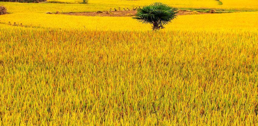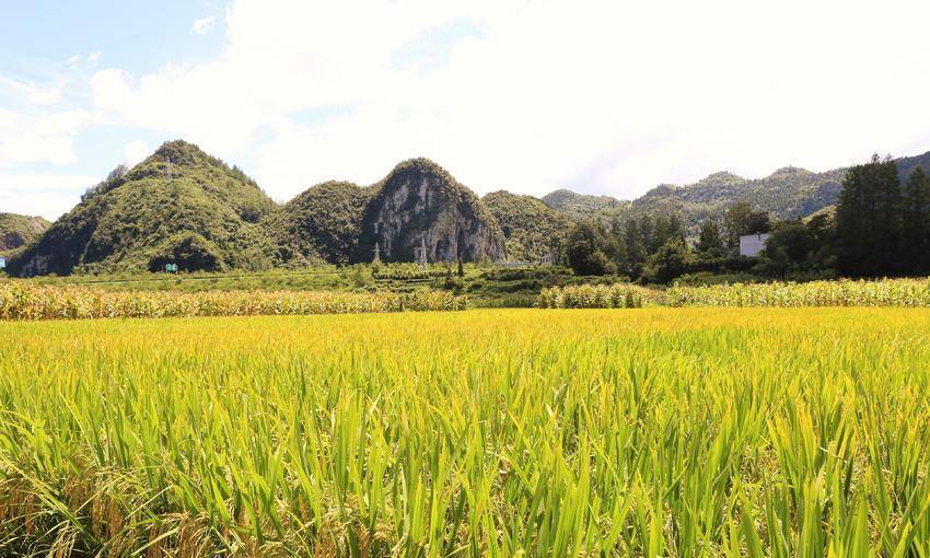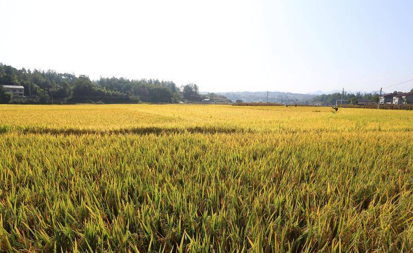 湖北日报客户端讯(通讯员向冰舟、杜雪平)秋意愈染愈浓,金色的稻田遍布鹤峰山中“小盆地”,将大地装扮成耀眼的色彩。一阵秋风起,送来稻谷香,觅香远望去,遍地金黄。青山、大道、村庄与金色稻田构成一幅秋日的画中画。