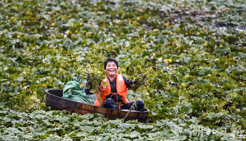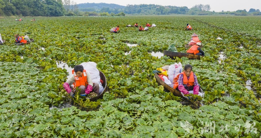 “深水菱角为绿色食品,纯自然生长,预计年产量在50万斤左右,第一批深水菱角15万斤已销往武汉,第二批今天开始采摘。基地每天聘请本地村民20多人进行采摘,带动周边农户增收,每人每天平均可收入300多元。”基地负责人李工说。