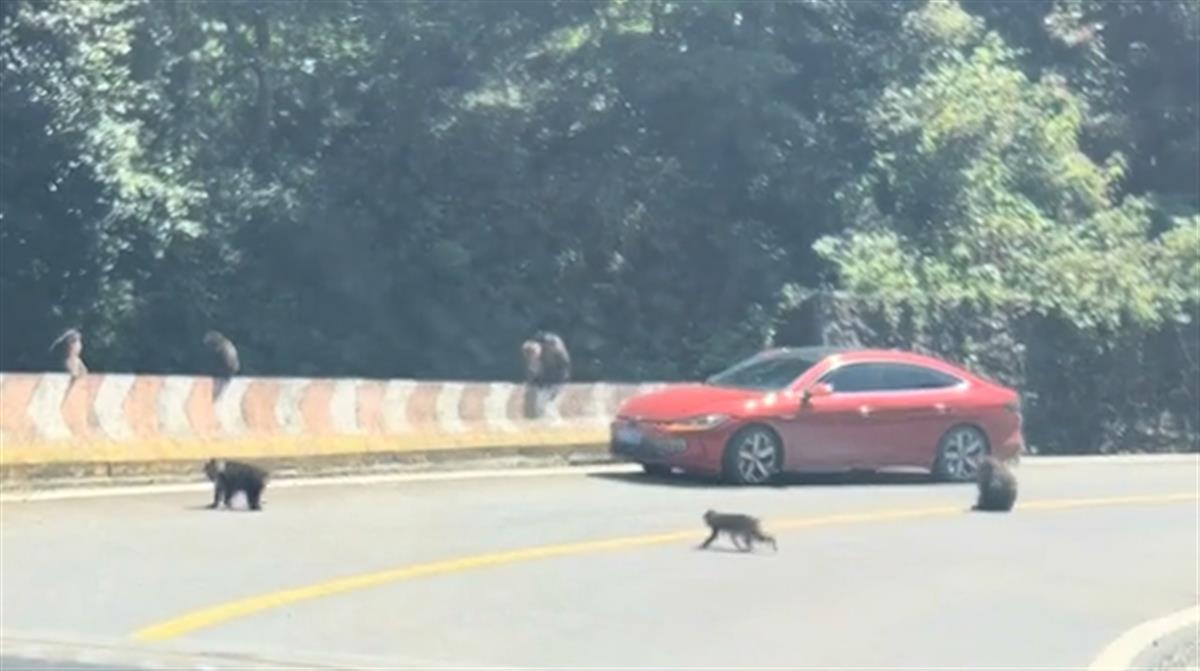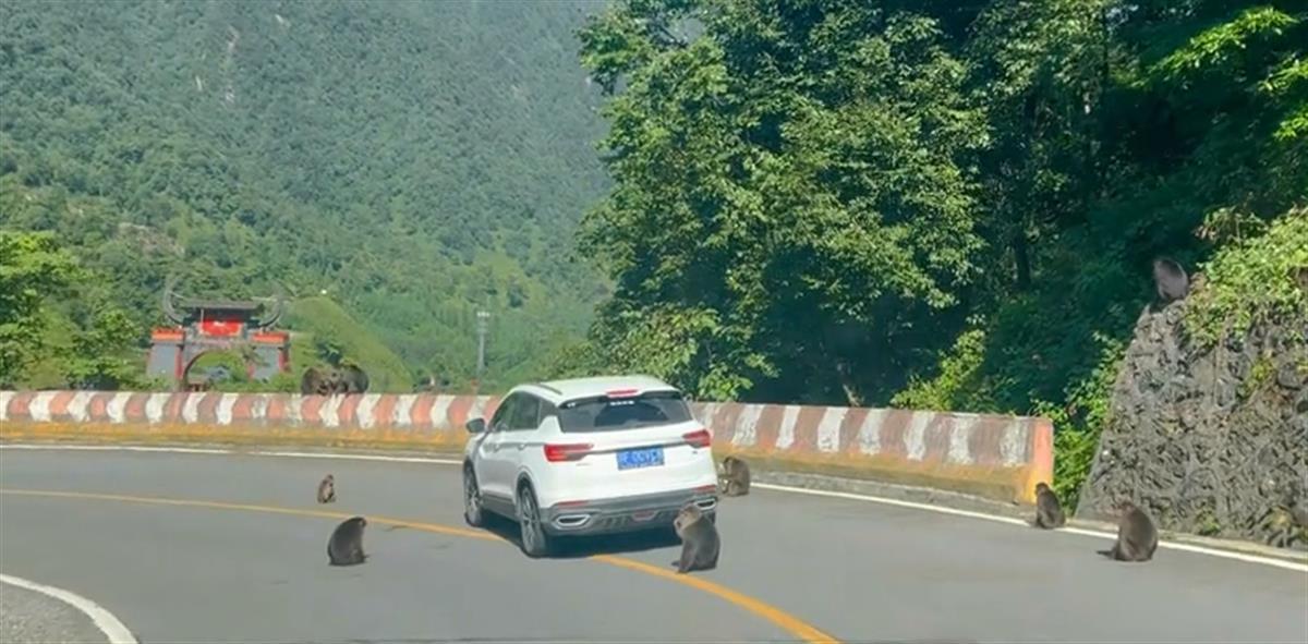 谭女士是四川乐山人,常住成都。9月3日下午,她回老家过周末时,驱车前往乐山市峨边县黑竹沟景区游玩。“我们买票进入景区后,又开车走了一段路,才到游客中心,猴群就在这段路上拦车。”谭女士说,她进景区时是下午2时许,看到前方一辆红色的小汽车在对向车道上,被猴群团团围住。这些猴子分布在小汽车的前后左右多个点位,好像会布阵一样。“我们的车没被包围,但也被猴子拦住了,只好放慢车速,等蹲在前面的猴子挪动了,我们再开走。”谭女士说。到了游客中心后,她还看到有一名游客手中拿着卫生纸,被一只猴子当成食物给抢走。猴子发现卫生纸食之无味后,才丢弃到一边。