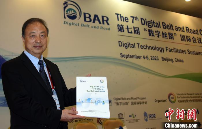 9月4日,第七届“数字丝路”国际会议在北京开幕,DBAR主席郭华东院士展示当天最新发布的《地球大数据助力“一带一路”可持续发展》报告。中新网记者 孙自法 摄