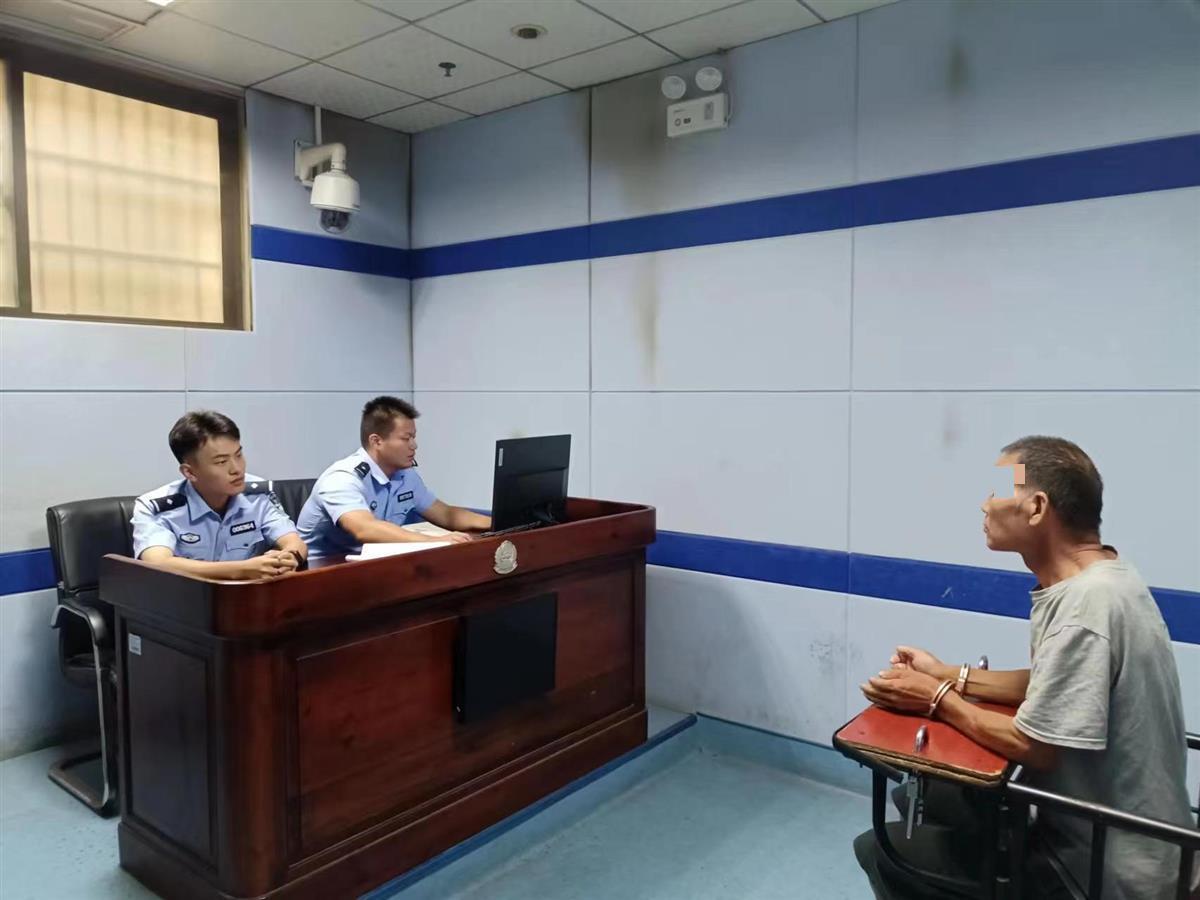嫌疑人陆某明接受警方调查(通讯员供图)