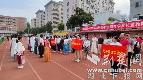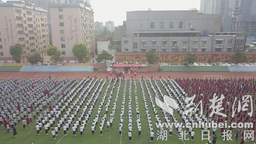 荆楚网(湖北日报网)讯(记者 李蔚东 通讯员 彭大林、张付军)9月6日上午,襄阳市诸葛亮中学全体师生齐聚学校操场举行开学典礼暨教师节庆祝活动。