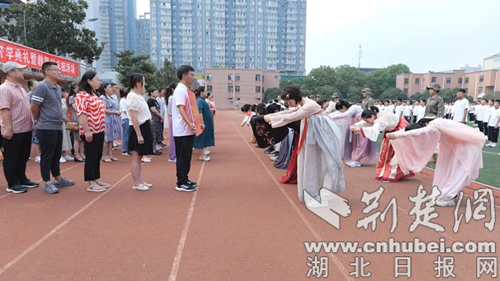 学生身着传统汉服向老师拜礼。通讯员 供图