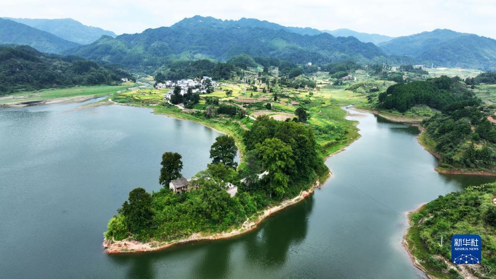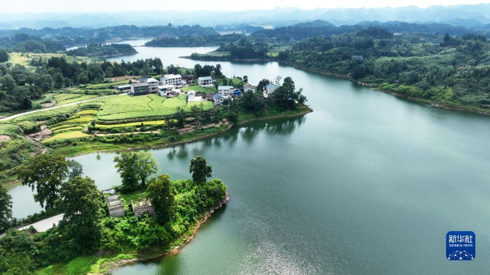9月6日拍摄的贵州省黔东南苗族侗族自治州黄平县旧州镇㵲阳湖畔美景(无人机照片)。