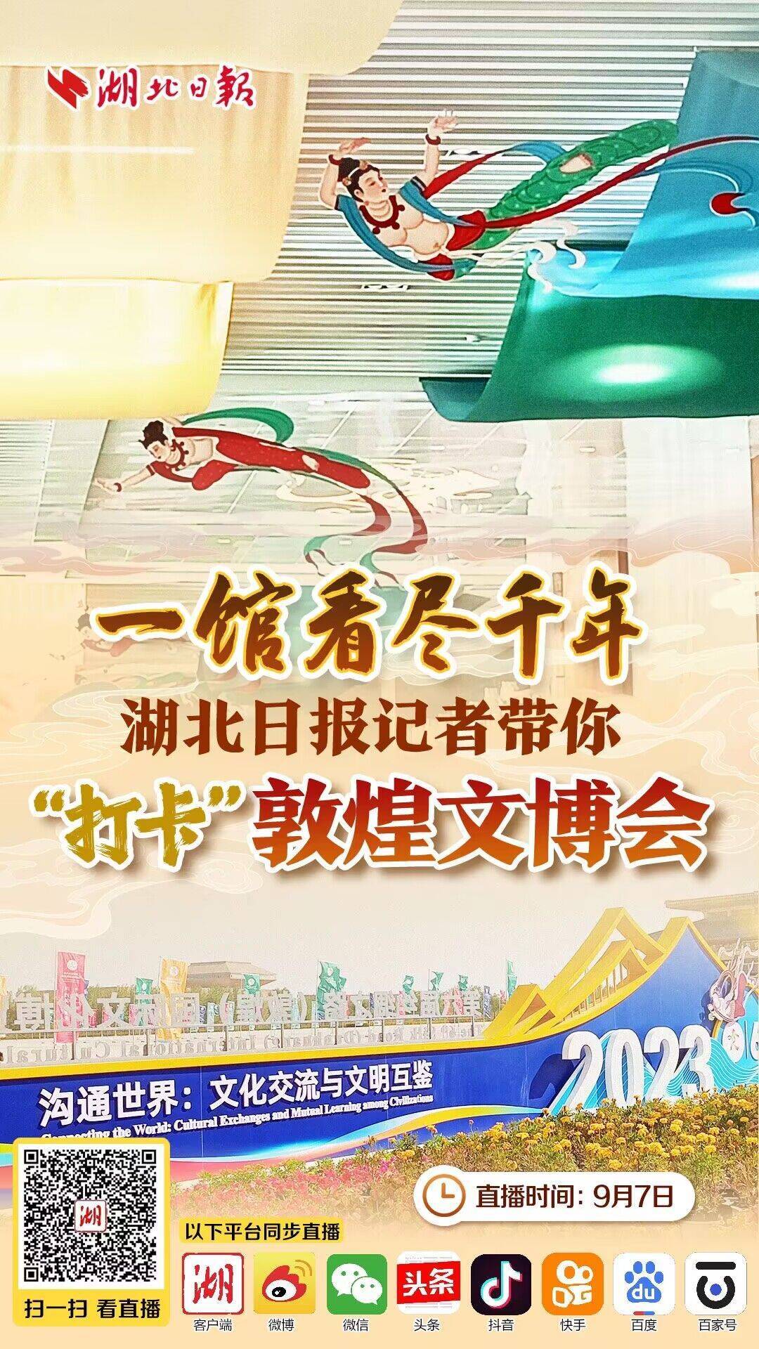 9月6日至9月7日,以“沟通世界:文化交流与文明互鉴”为主题的第六届丝绸之路(敦煌)国际文化博览会在敦煌举办,主展馆设在敦煌国际会展中心。想感受独具魅力的敦煌文化吗?想DIY属于自己的敦煌壁画吗?9月7日上午10点,湖北日报全媒记者带大家“打卡”敦煌文博会,敬请期待!