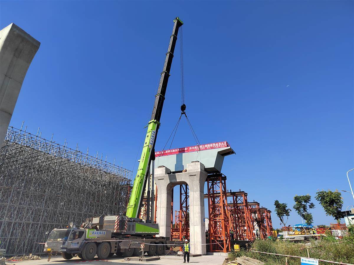 项目经理李立介绍,大桥的钢箱梁施工是项目的关键工程之一。为确保吊装任务安全、高标准实施,项目部多次会商、反复推演,提前编制了详细的钢箱梁架设方案和计划。大桥整联钢箱梁横向分成8个节段,吊装总重量达3600吨,共计32段钢梁,预计90天完成。