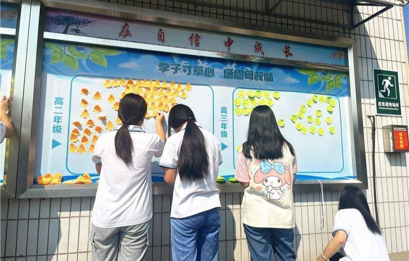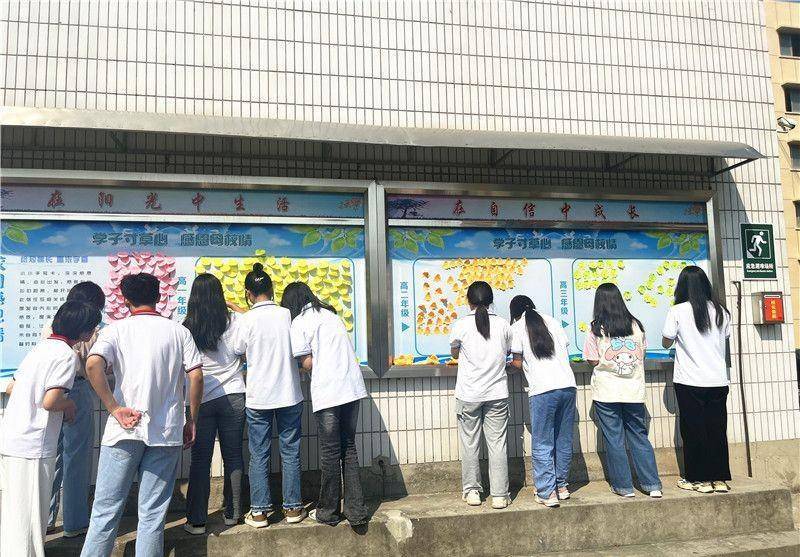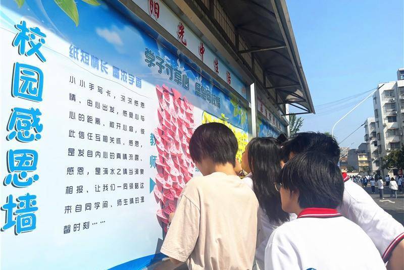9月6日,谷城三中的校园一角,不少学生在校园感恩墙上抒写对生活、对他人、对学校的深深感激和祝福。