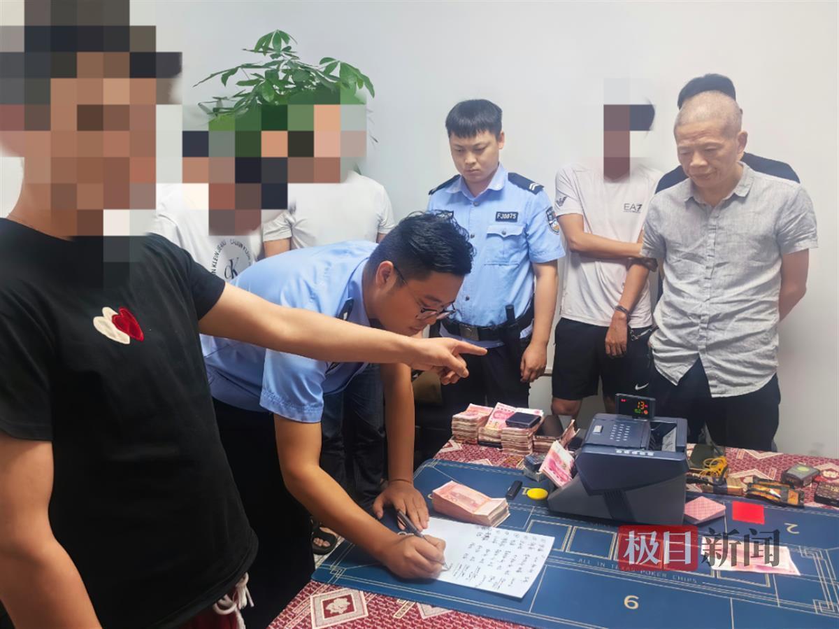 据办案民警告诉极目新闻记者,老板罗某以车行的名义暗地里经营棋牌室,为他人提供赌博场地,利用“德州扑克”的形式进行赌博,并充当荷官,非法盈利。