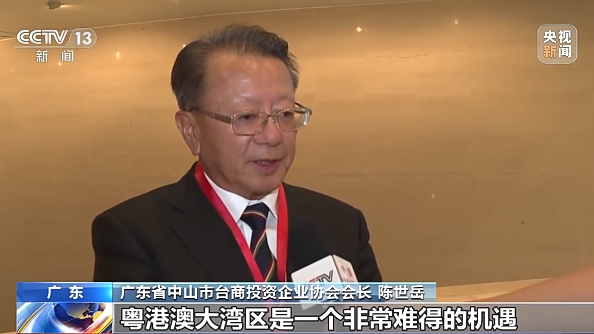 广东省中山市台商投资企业协会会长 陈世岳:粤港澳大湾区是一个非常难得的机遇,尤其在中山这一块,刚好是在粤港澳大湾区的一个中心的位置上。台商台胞共同参与粤港澳大湾区建设,我相信这样的机遇对两岸的各方面来讲都会更好。