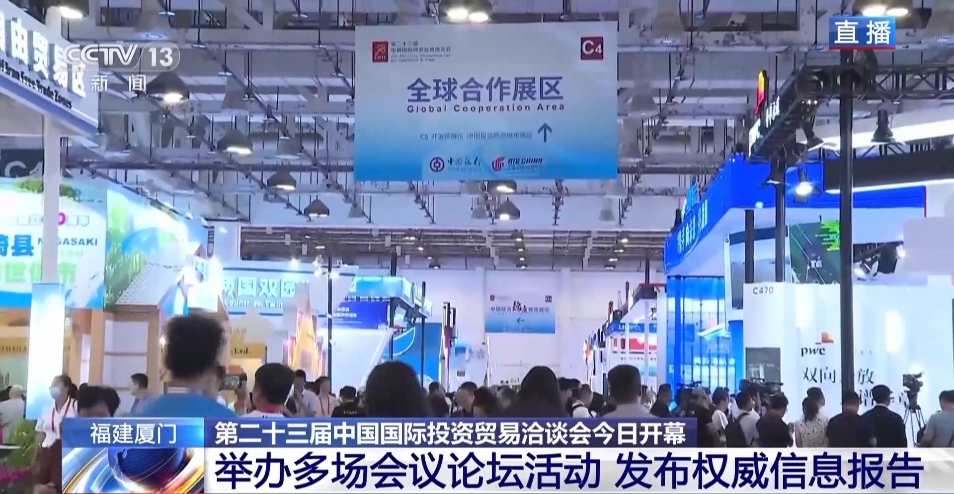 总台记者 陈庚:本届投洽会总展览面积达12万平方米,分为投资促进馆、产业创新发展馆、项目资本对接馆三大区域。在这里,开放、融合的感觉无处不在。小到企业,大到国家、国际组织,大家都在寻求合作共赢。本届投洽会,有100多个国家和地区参展参会,12个国际组织参与大会相关活动,举办论坛、发布报告或应邀演讲,是近年来国际组织参与最多的一次。