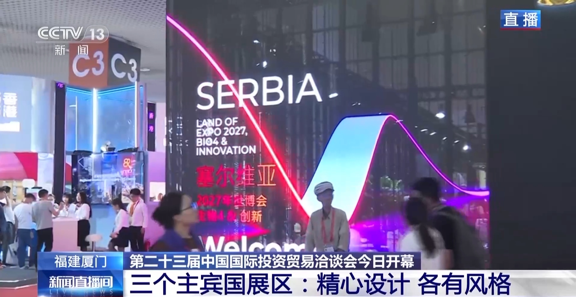 总台记者 陈庚:我所在的位置就是本届投洽会投资促进馆的中心地带,三个主宾国塞尔维亚、巴西、卡塔尔的展区附近。许多国家和地区不远万里来到中国参展参会,凸显中国在全球投资格局中占据非常重要的地位,也强化了投洽会“扩大双向投资 共促全球发展”的地位作用。