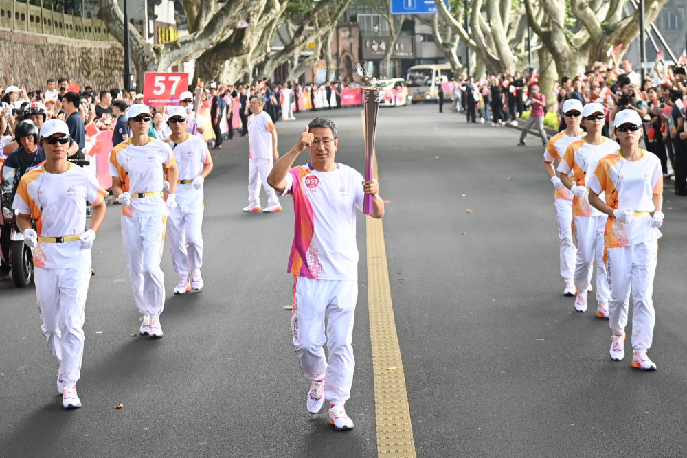 作家麦家是第54棒火炬手,他说:“很荣幸为亚运跑了‘一小步’,杭州这座城市也为我的人生跑了一大步,让我跑进了荣幸、跑进了幸福。”