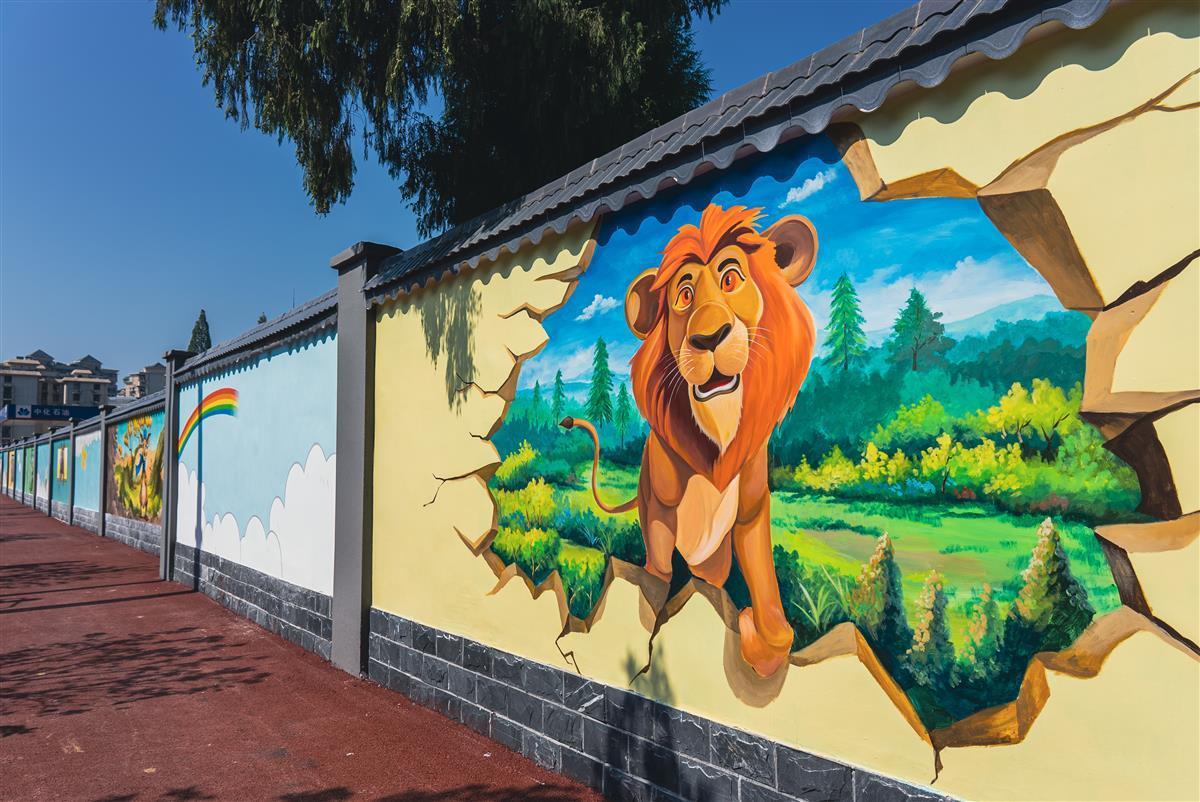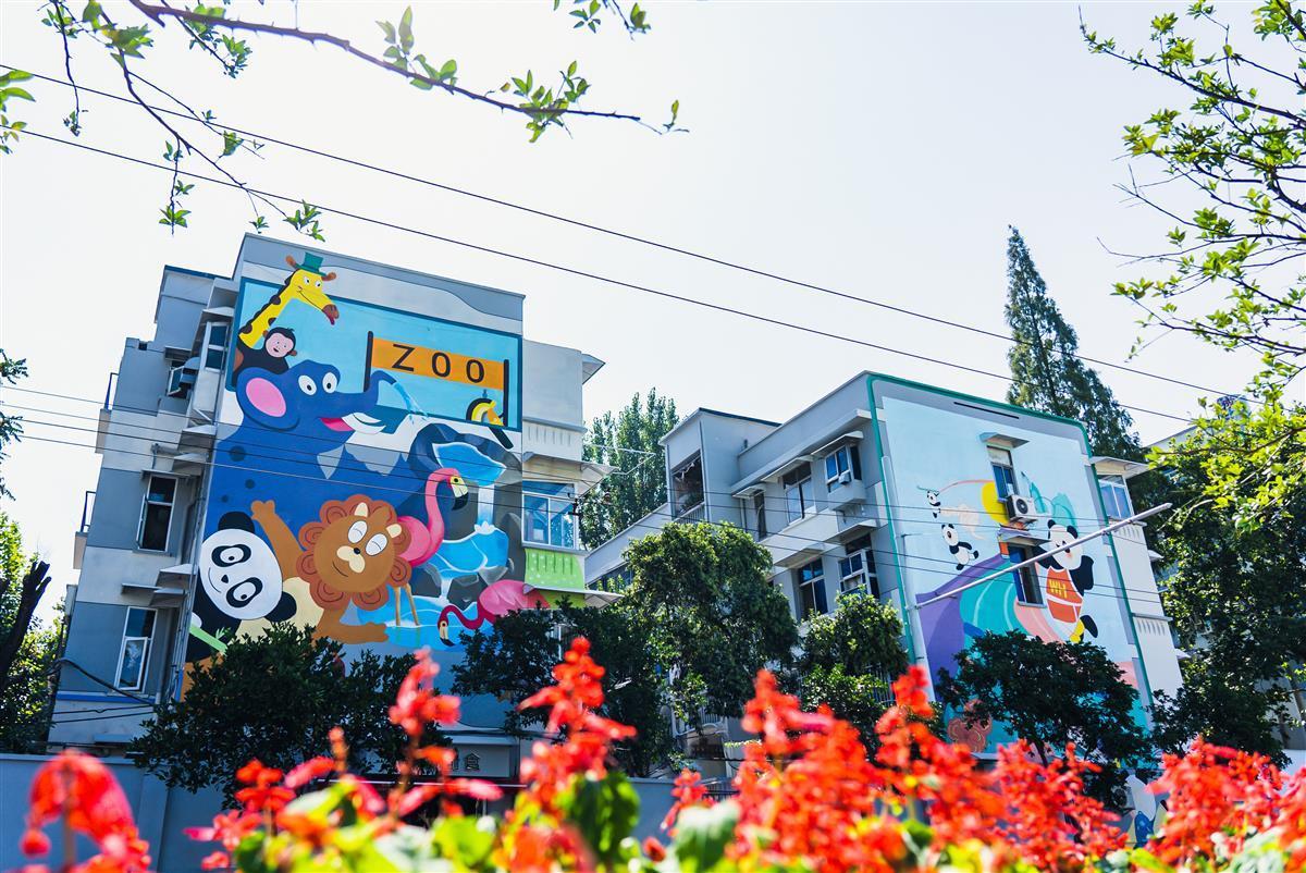 在武汉市汉阳区动物园路的一栋楼房外立墙面上,远看是一只调皮的猴子,而另外两栋楼房墙面上,火烈鸟、熊猫、大象在一起和平相处;围墙上,3D狮子和犀牛“破”墙而出。2000多平方米的动物彩绘,与动物园内的真实动物遥相呼应。