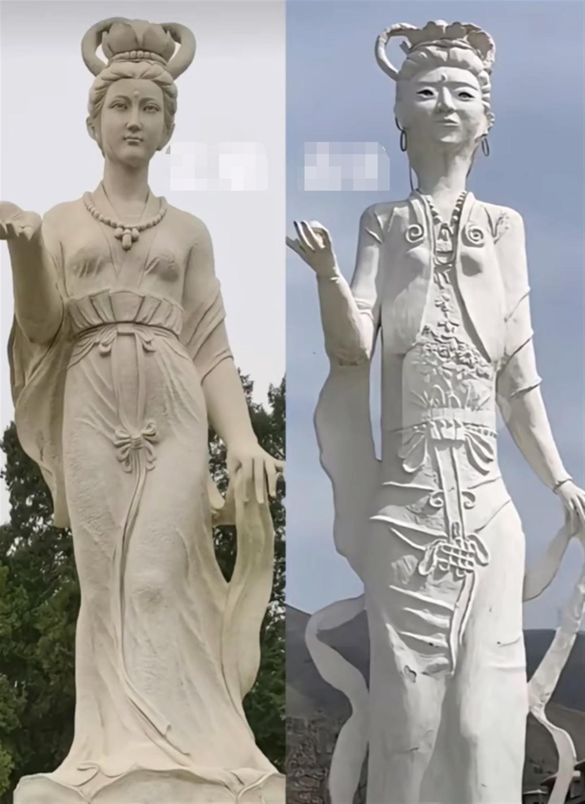 有网友制作的两处雕塑对比图(截图自网络视频)