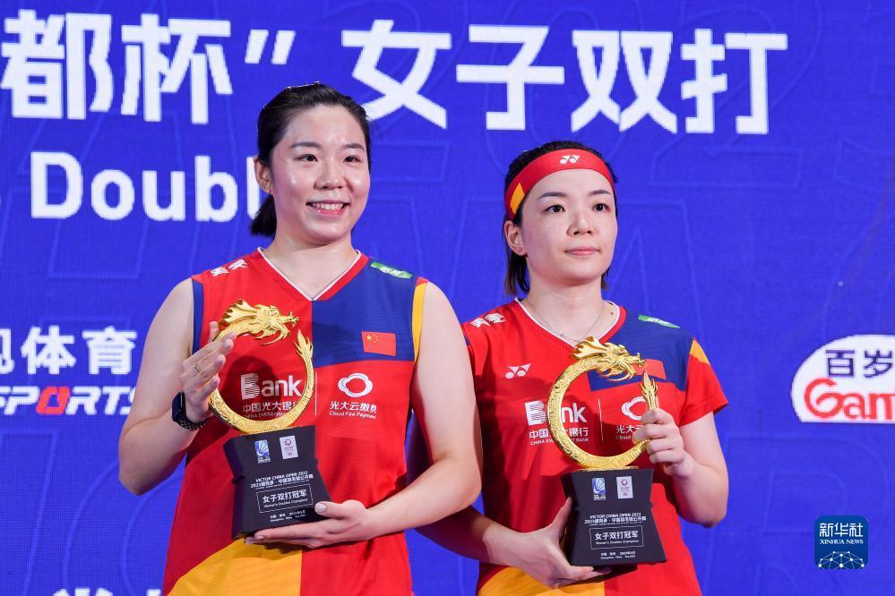 当日,在江苏省常州市举行的2023中国羽毛球公开赛女双决赛中,中国组合陈清晨/贾一凡以2比0战胜韩国组合白荷娜/李绍希,夺得冠军。