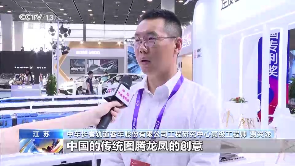 中车长春轨道客车股份有限公司工程研究中心高级工程师 贾兴泷:我们这个车从整个外形来说采用了低阻力仿生头型,从涂装来说是采用了中国的传统图腾龙凤的创意来的,体现出了中国的设计审美,从传统的功能设计向功能加情感设计方向转向。