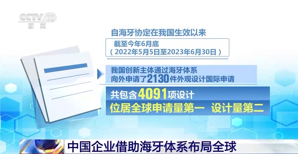 据统计,自海牙协定在我国生效以来,截至今年6月底(2022年5月5日至2023年6月30日),我国创新主体通过海牙体系向外申请了2130件外观设计国际申请,共包含4091项设计,位居全球申请量第一,设计量第二。这说明越来越多的中国企业正在积极通过海牙体系开展全球产品市场布局,让中国创意、中国设计、中国制造更好地走向世界。
