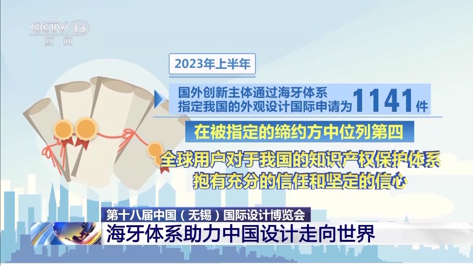 此外,今年上半年,国外创新主体通过海牙体系指定我国的外观设计国际申请为1141件,在被指定的缔约方中位列第四。也说明全球用户对于我国的知识产权保护体系抱有充分的信任和坚定的信心。