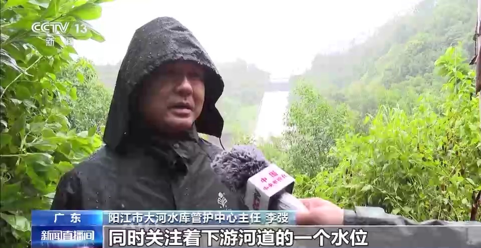 阳江市大河水库管护中心主任 李弢:进行24小时的值班值守,同时关注着下游河道的水位,提前做好调度的计划,最大限度保证水库安全,还有我们下游人民群众财产安全。