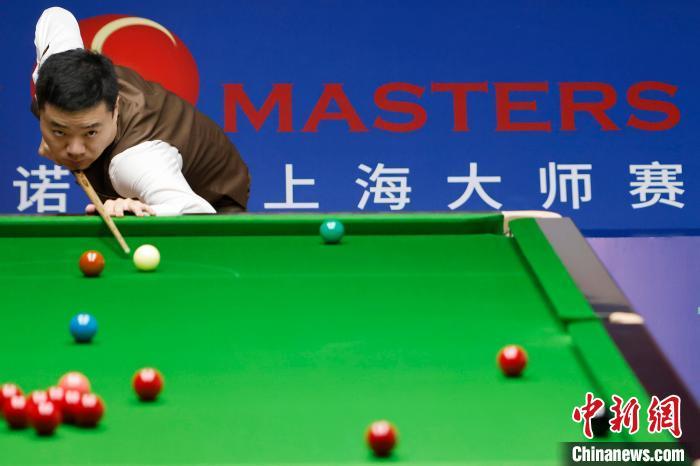 “中国一哥”丁俊晖在1号台与斯佳辉进行“中国德比”大战。中新网记者 殷立勤 摄