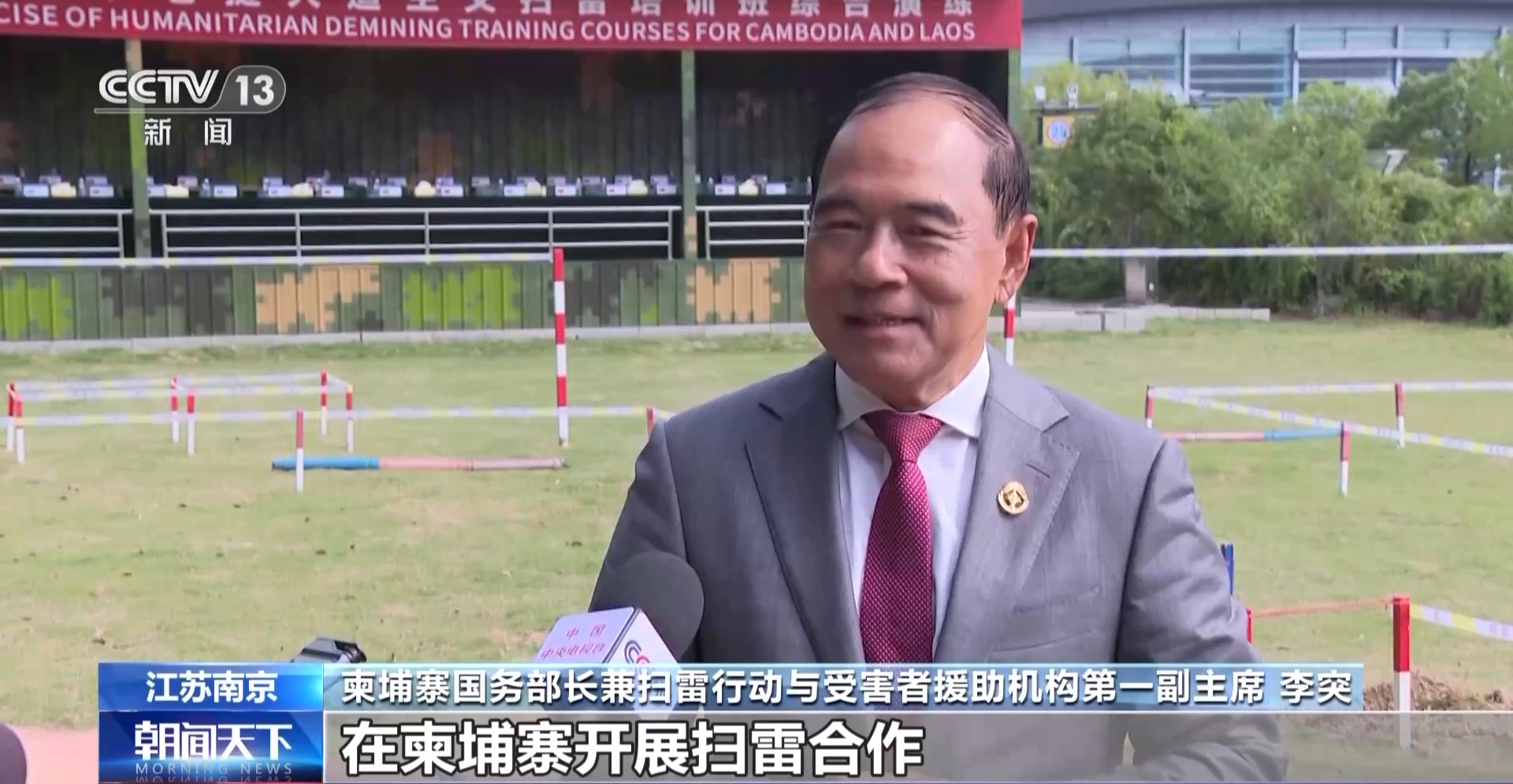柬埔寨国务部长兼扫雷行动与受害者援助机构第一副主席 李突:柬埔寨非常感激中国多年来和我们携手在柬埔寨开展扫雷合作。我们有超过33万4000个家庭受益于中国的(扫雷援助)项目,约150万人从这些帮助中获益。中国很好地帮助了我们,我们感谢中国人民和中国政府帮助我们拯救生命,因为排雷是拯救生命的事业,同时它也释放了更多土地供人们从事农业生产。