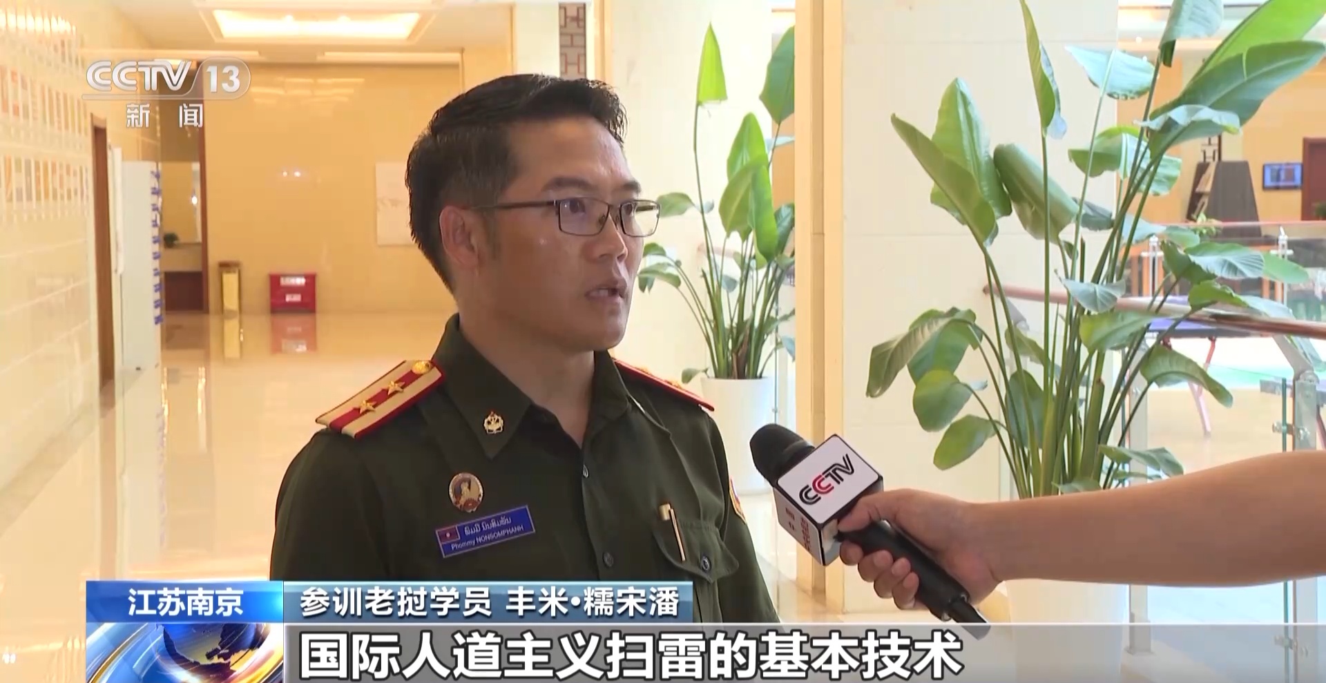参训老挝学员 丰米•糯宋潘:我们学到了一些关于国际人道主义扫雷的基本技术,学习到了一些新技术装备,比如说机器人,还有无人机勘察或者是销毁。通过三个月我们学习所掌握的一些知识,回到国内以后,我们要尽努力应用在工作上,发挥更大的作用。