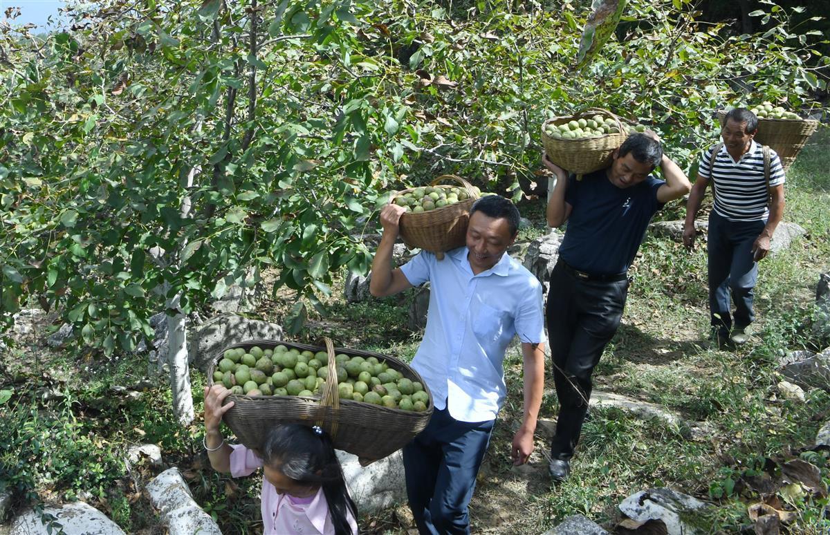 金秋时节,核桃飘香。位于鄂西北保康县内的35万亩核桃基地迎来丰收,浑圆饱满的核桃压弯枝头,村民们挥竿抢收,山间田野一派繁忙景象。