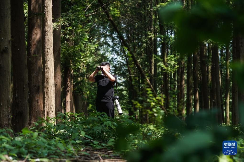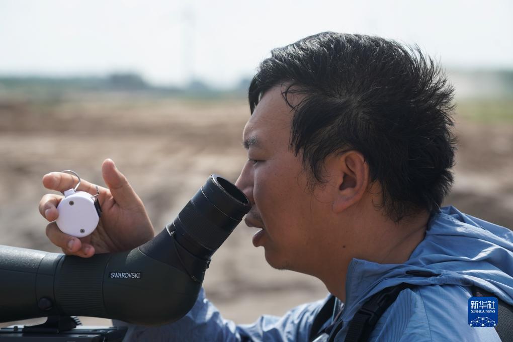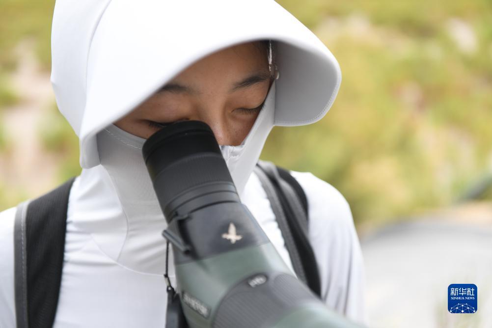 李征浩在观鸟台上观测(2023年8月21日摄)。新华社记者 杨磊 摄