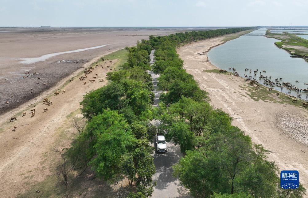刘彬驱车在保护区巡护(2023年8月21日摄,无人机照片)。1982年出生的刘彬,因鸟与麋鹿结缘。2009年,江苏大丰麋鹿国家级自然保护区首次发现东方白鹳,正在安徽大学攻读鸟类学硕士的刘彬跟随导师来到大丰,保护区的生物多样性深深吸引了他。同年毕业后,刘彬进入到保护区工作。野外监测,为麋鹿拌饲料,救护受伤、被困麋鹿……这一干就是14年。作为一名博士,这些年,刘彬一直坚持开展科研工作:为保护区没有记录过的鸟类做环志,研究人类活动对野化麋鹿的影响,还与高校合作研发与麋鹿相关的益生菌。新华社记者 季春鹏 摄