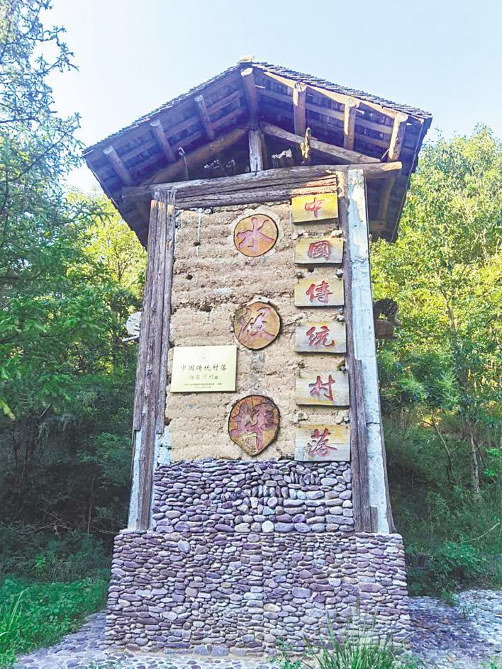 在一个由卵石和木头堆砌成的高大牌坊前,“中国传统村落水没坪”几个红色大字映入眼帘,旁边挂有住房和城乡建设部授予的牌匾。资料显示:水没坪是由绝壁合围的溶蚀三角形盆地,是国家4A级黄仙洞景区的重要组成部分,占地面积约300亩,常住居民20户。村民主要靠旅游接待、高山雾茶及食用菌种植等特色产业为生。