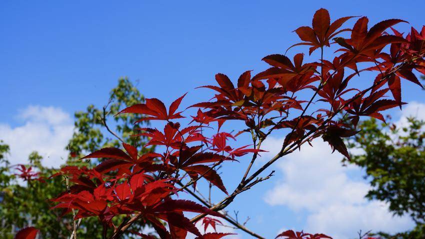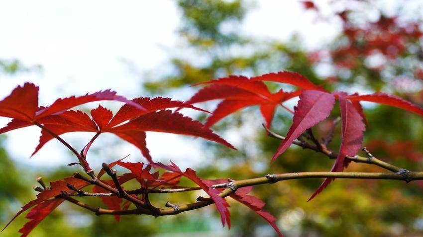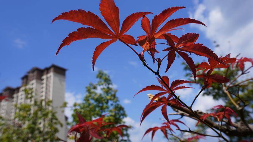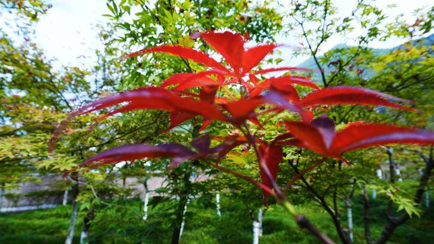 湖北日报客户端讯(通讯员杜雪平)9月14日,笔者路过麂子峡桥头公园,只见蓝天白云,绿树成荫,凉风蝉鸣,蓝天下的溇水河岸翠竹摇曳,枫林娇艳如春花烂漫。正是:“枫林夹岸水淙淙,染尽蓝天半醉容”,藏不住满眼“春”色,风景如画。