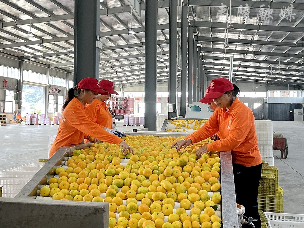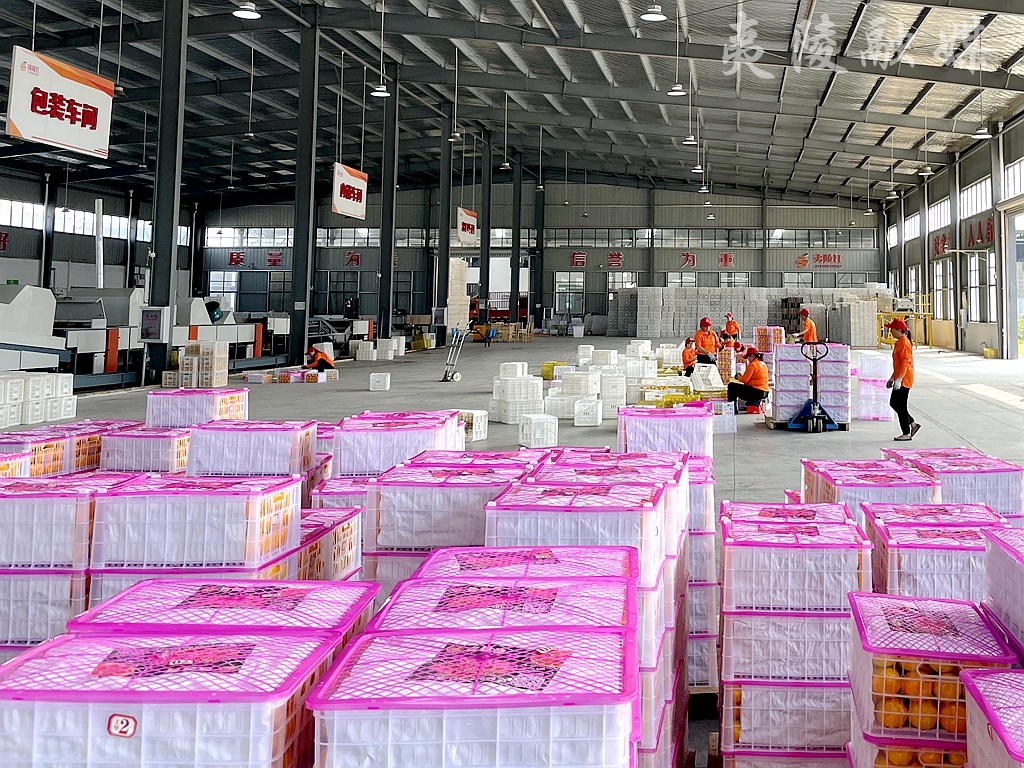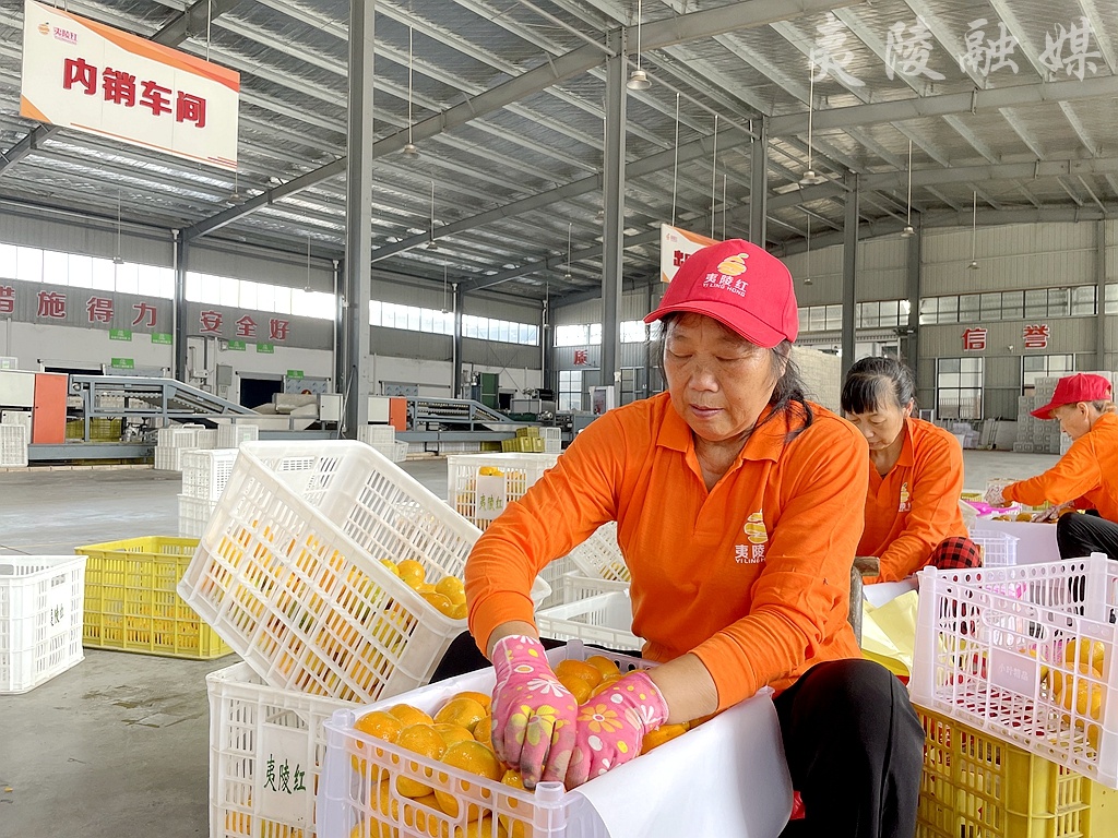新鲜采摘的蜜橘被送到宜昌夷陵红生态农业开发有限公司厂房进行加工,一个个柑橘随着智能分选生产线快速运转,完成清洗、烘干、精选、分级、装筐等环节,经由工人们打包装车后,准备销往国内外市场。不少外地客商已经来到厂区,现场参观、品尝。