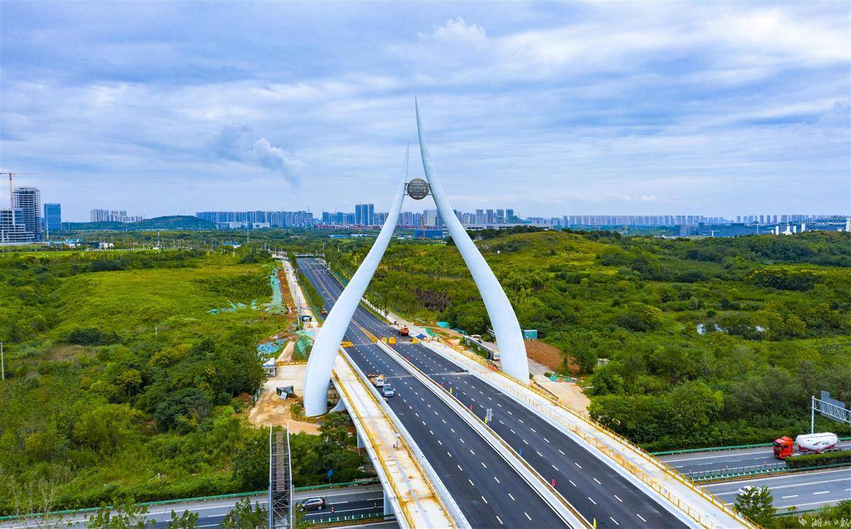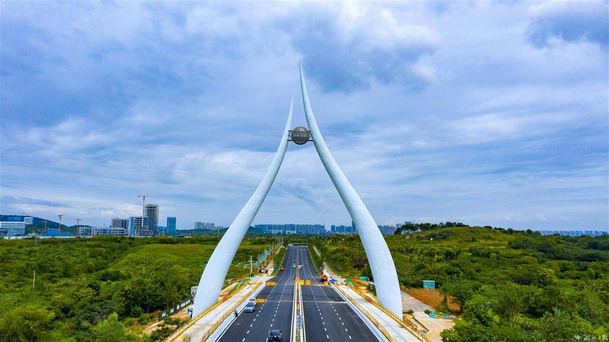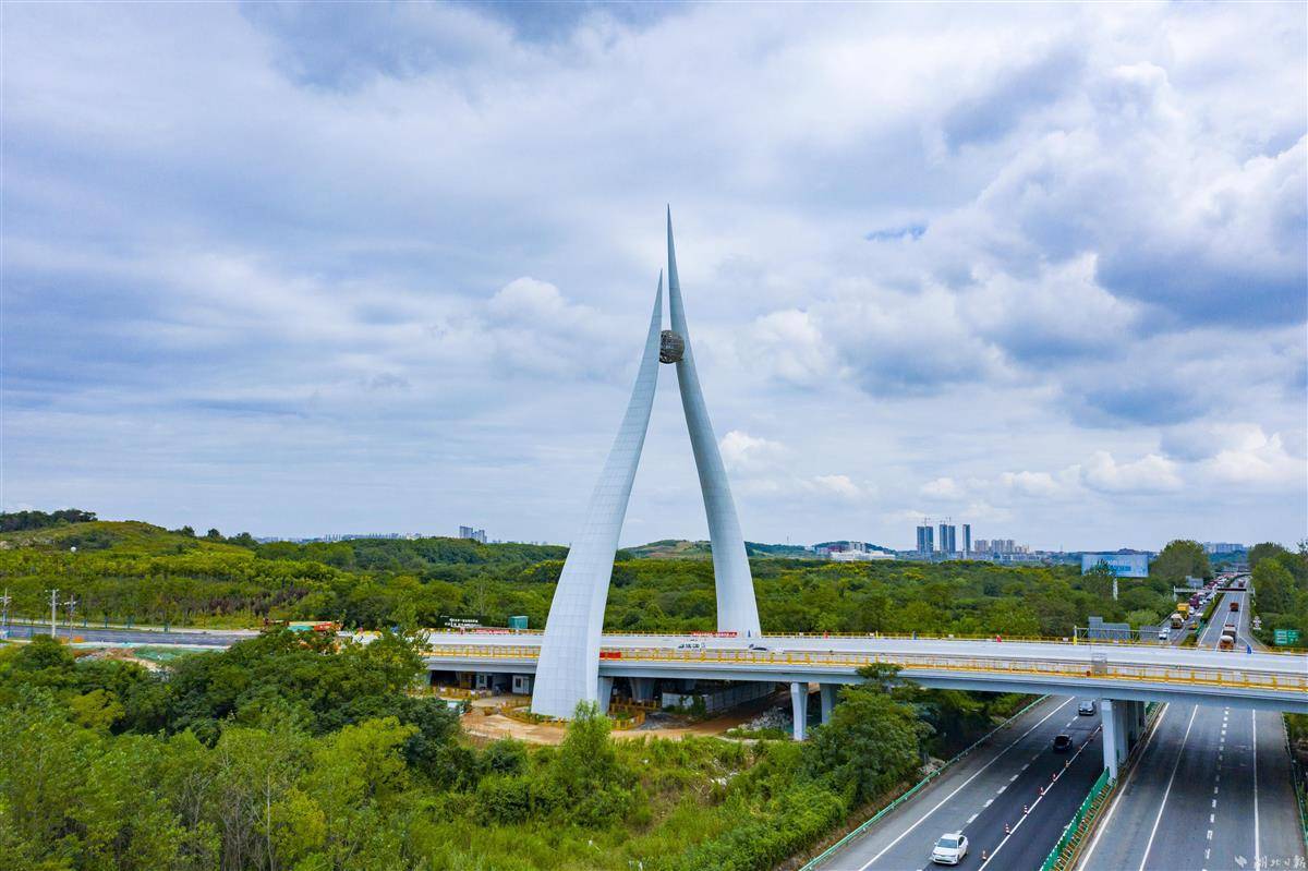 9月14日,光谷未来一路与沪渝高速交会处,武汉新城中轴线上的新地标“光谷之珠”已经完成钢结构和外立面施工。“光谷之珠”连接未来一路南北(科学北路—科技五路),工程改造路段全长1015米,是武汉新城南北向的重要主干道。“光谷之珠”桥塔总高度75米,左右两侧生机盎然的“新叶”寓意光谷科学岛的生命健康和光电信息两大核心产业,托起武汉新城这颗的“璀璨明珠”。