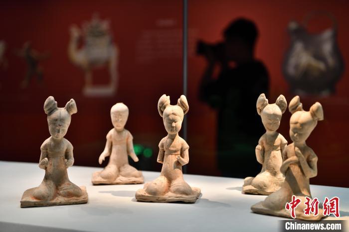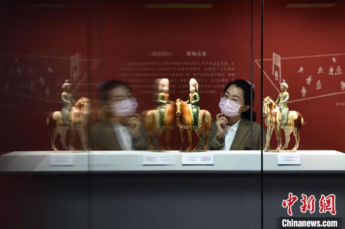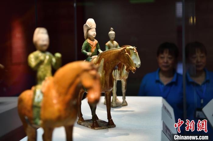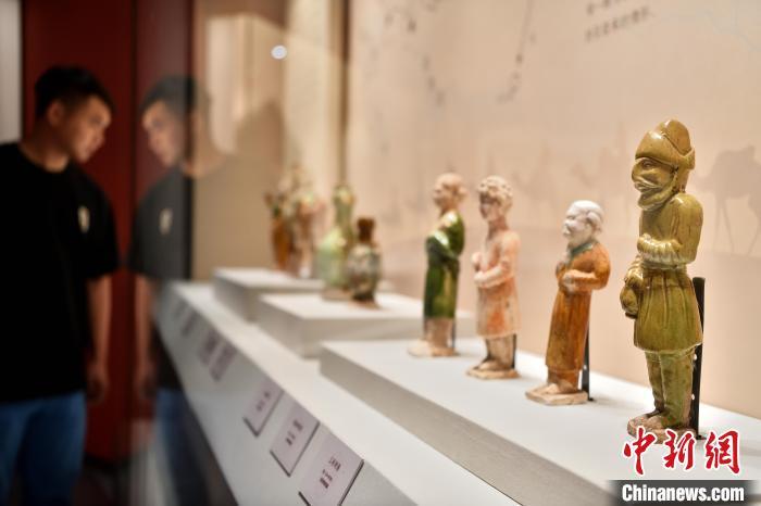 9月15日,在位于太原市的山西青铜博物馆内,媒体记者探访《大唐东都——唐代洛阳文物精品展》,一组西域人物陶俑引人关注。该展览通过陶器、金银器、石刻造像等100余件(组)唐代文物,勾勒出唐代洛阳城的繁华景象,展现唐人文化生活,引领民众追古探今。记者 韦亮 摄