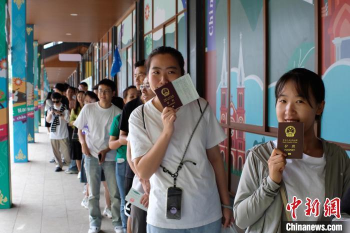 9月15日,手持护照的中国游客等待便捷通关。中新社记者刘俊聪摄