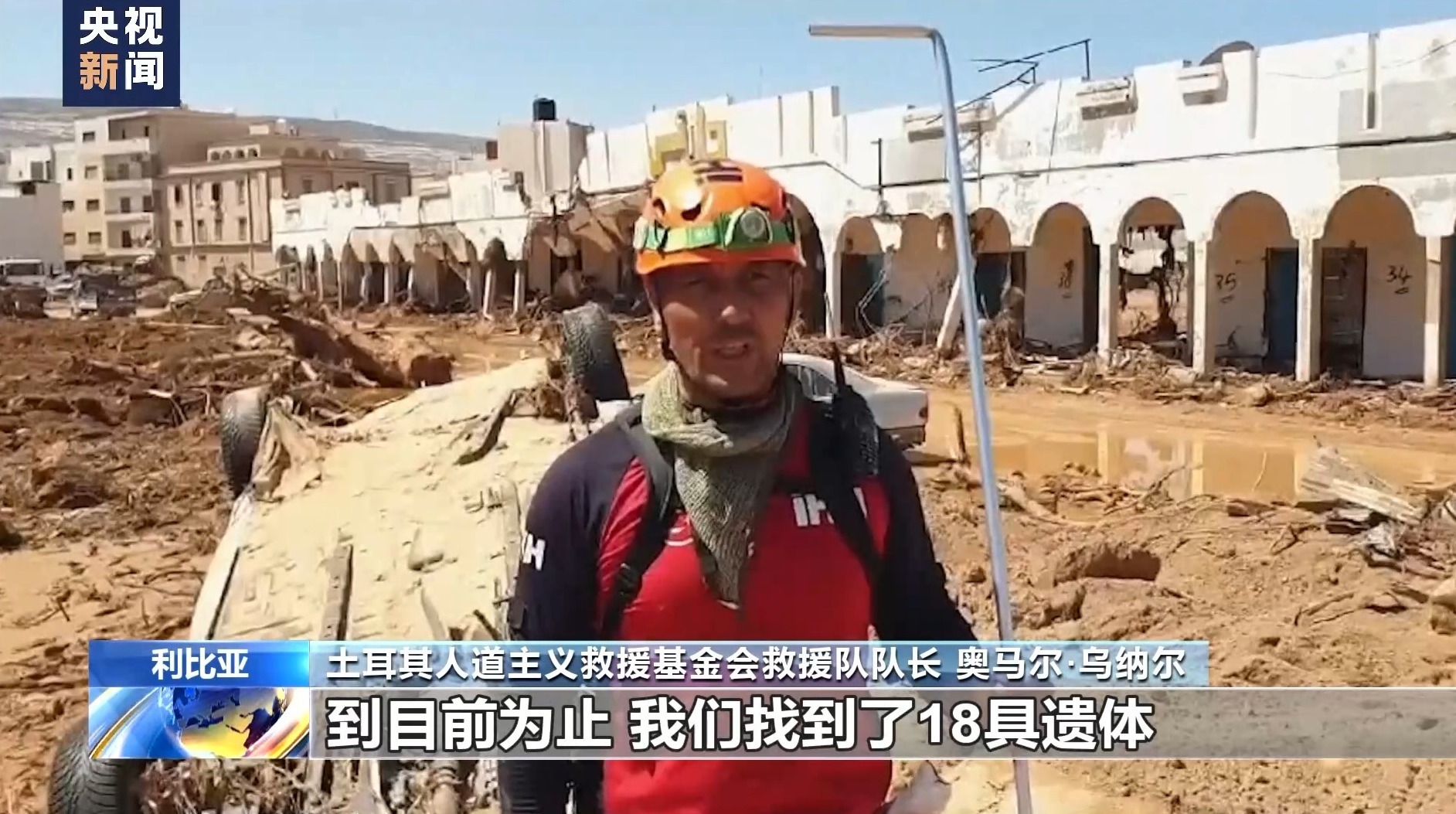 土耳其人道主义救援基金会救援队队长 奥马尔·乌纳尔:我们救援队在洪水灾害发生后的第二天抵达利比亚城市德尔纳。到目前为止,我们找到了18具遗体。加上土耳其灾害和应急管理主席团小组,我们一共找到了104具遗体。