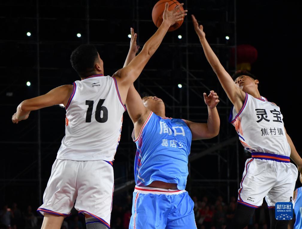9月15日,灵宝焦村镇代表队球员吕云龙(左二)在比赛中上篮。新华社记者 李嘉南 摄