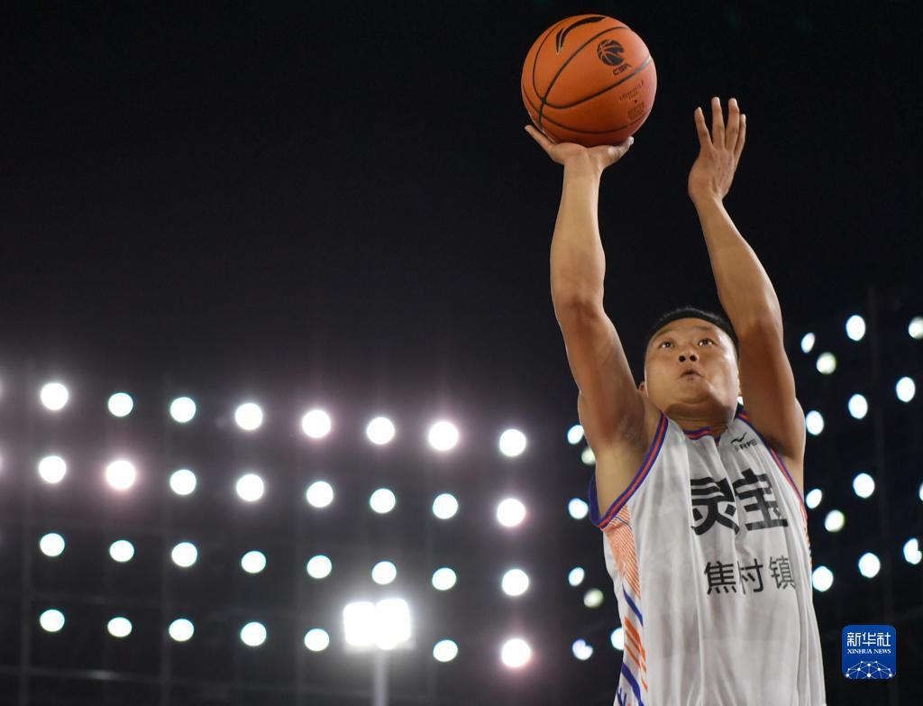 9月15日,灵宝焦村镇代表队球员赵海涛在比赛中投篮。新华社记者 李嘉南 摄