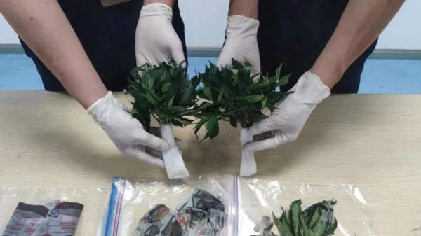 缉毒民警在边防检查中发现,一名旅客双肩包内的口罩厚度有明显差异。经拆卸检查,每个口罩夹层内均藏有冰毒,共计100包,1.45公斤。