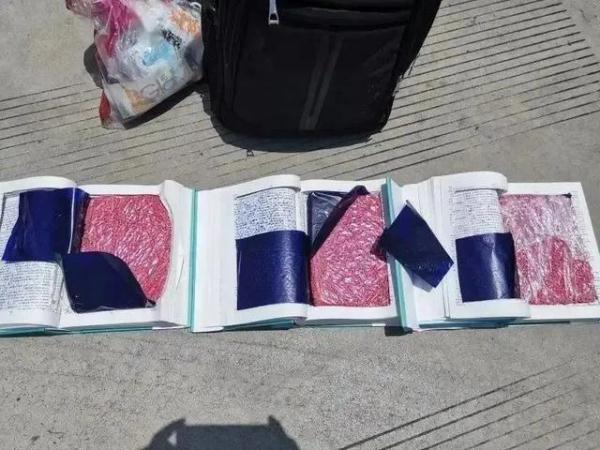 民警在一次公开查缉中,从6本被掏空的可疑书籍内查获冰毒5.877公斤。