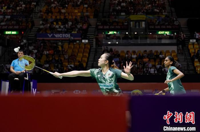 图为马来西亚组合陈康乐/蒂娜在女双决赛中。 中新网记者 侯宇 摄