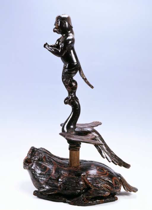 △湖北荆州天星观2号战国楚墓出土的漆木彩绘蟾座凤鸟羽人