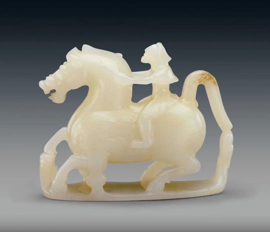 △陕西咸阳周陵新庄汉元帝渭陵附近出土的汉圆雕玉仙人奔马 咸阳博物院藏