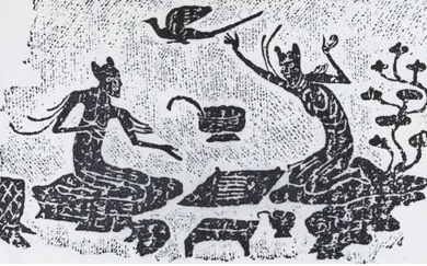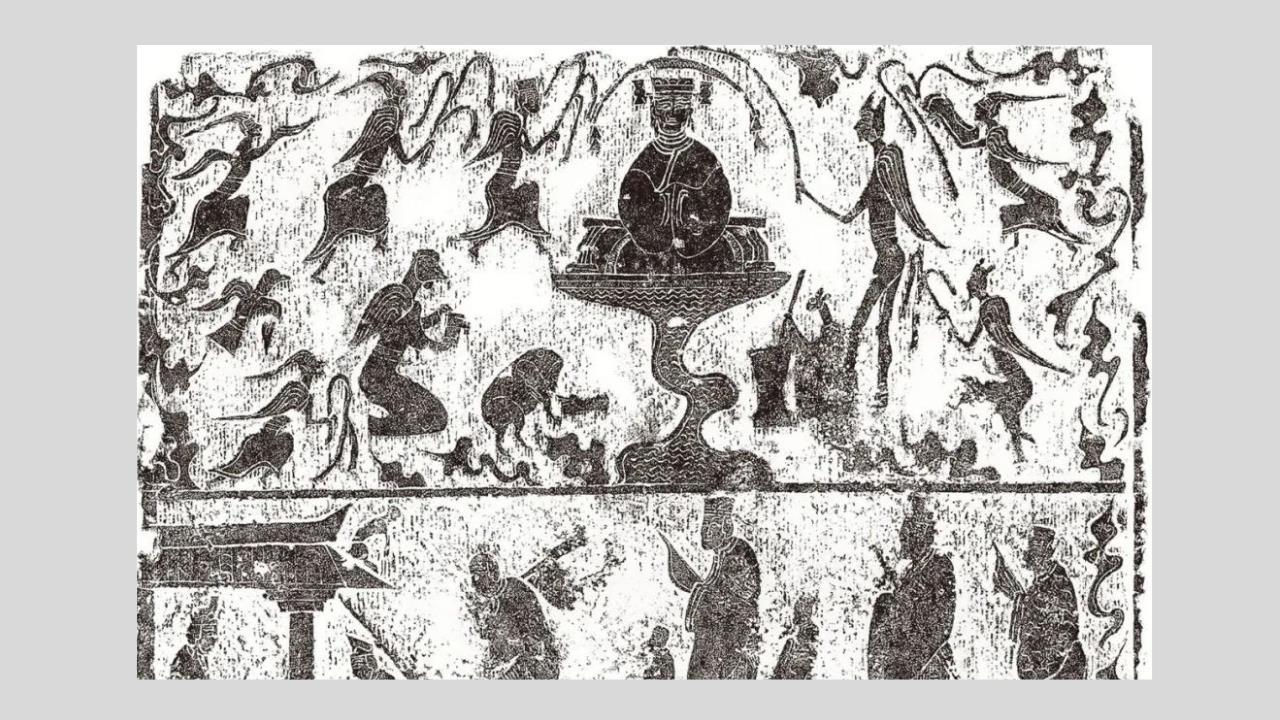 △西王母画像石拓片(局部) 山东博物馆藏
