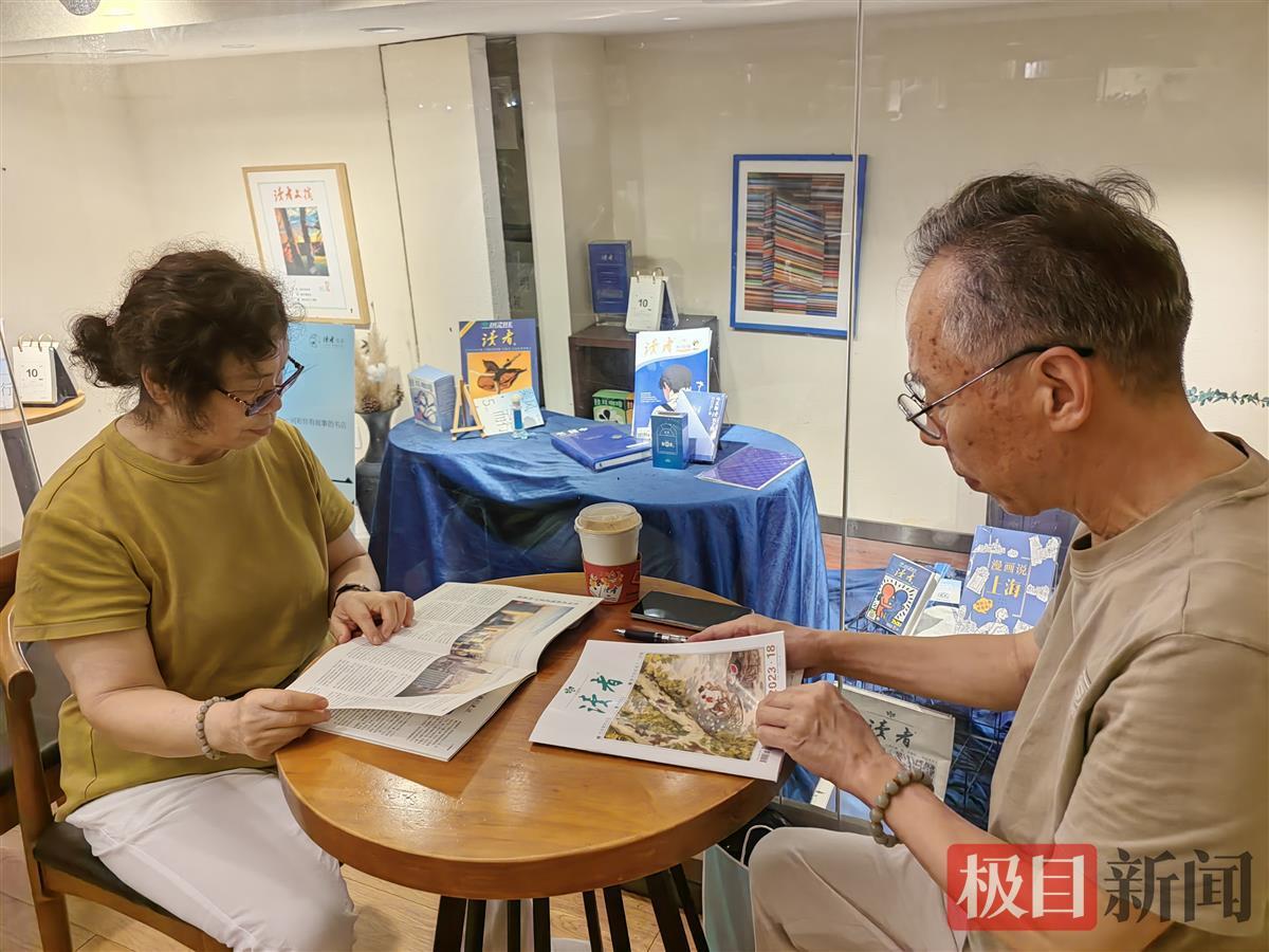 作为多年的读者,69岁的谢永和67岁的束蕾已经坐了一个多小时,一人捧一本杂志看得入迷,桌边两杯咖啡已喝过一半。一个多小时前,老两口准备从九江路走去南京东路步行街,正好路过读者书店,当即愉快地决定进店坐坐。