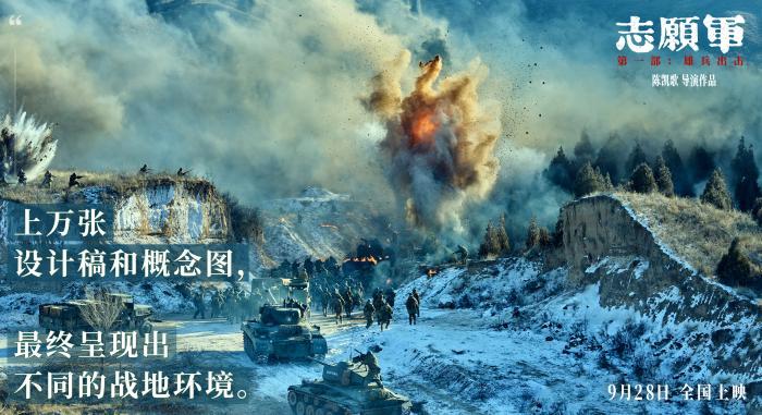 电影《志愿军:雄兵出击》由中国电影股份有限公司领衔出品,中国新闻网等联合出品,中国电影股份有限公司发行,陈凯歌执导,影片将于2023年9月28日全国上映。(完)
