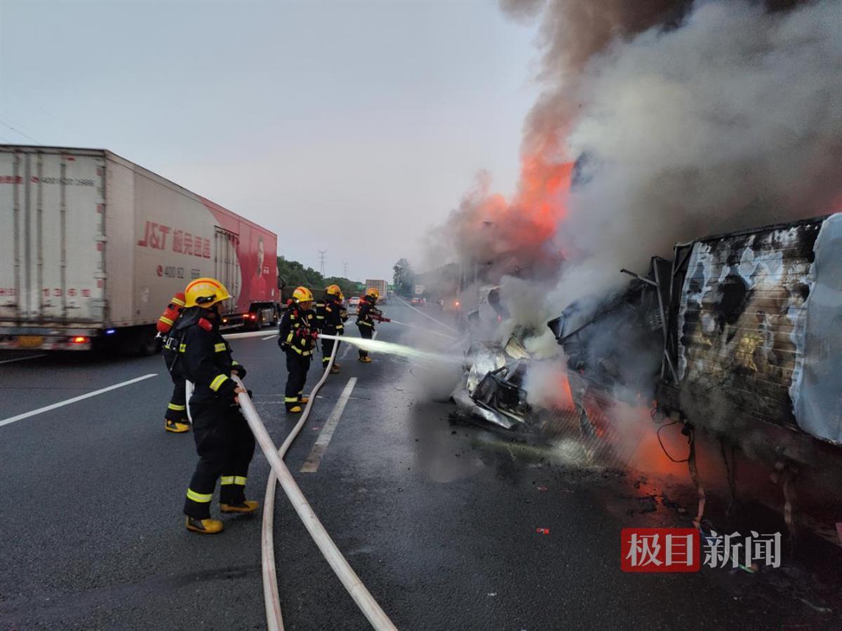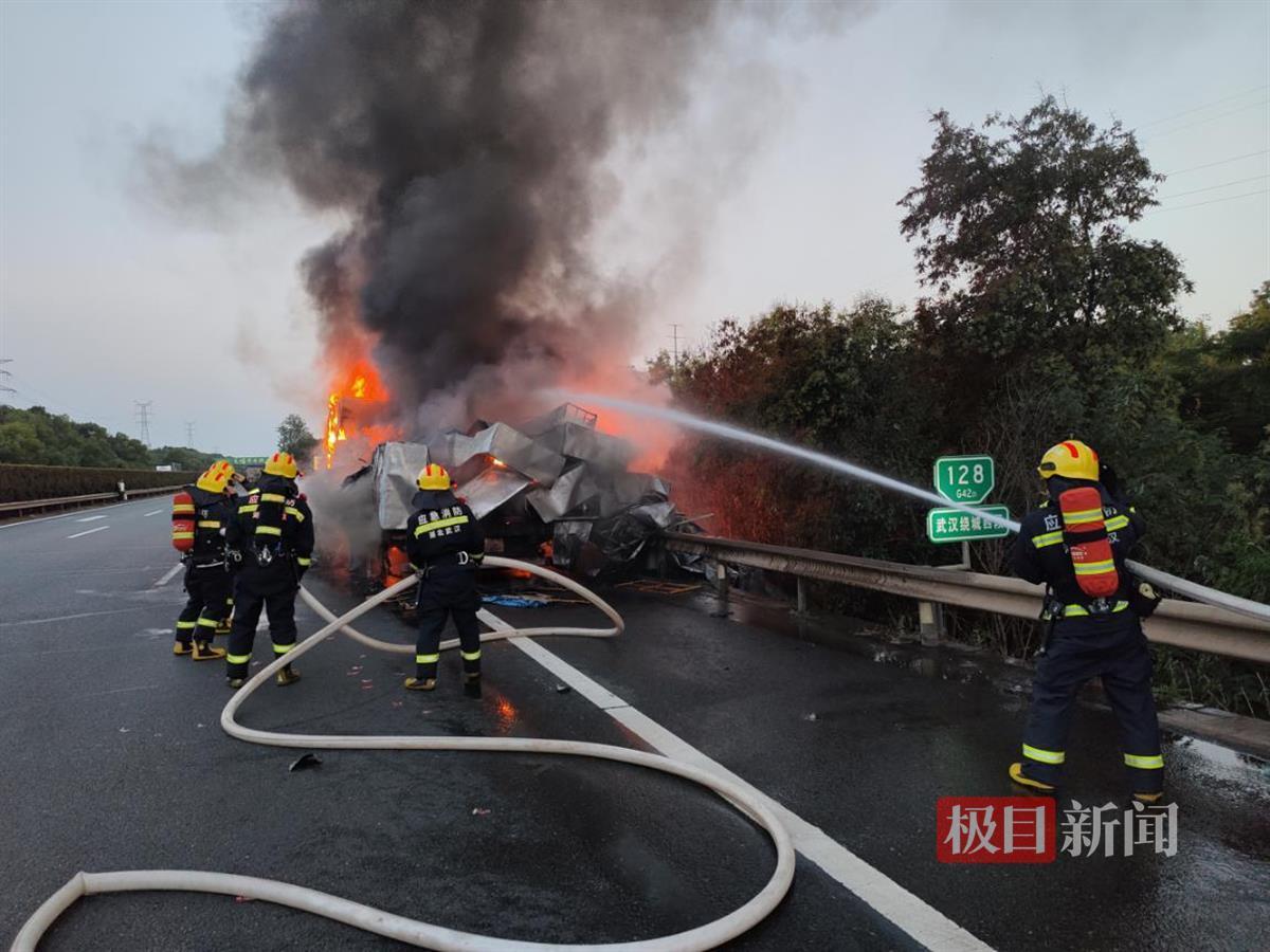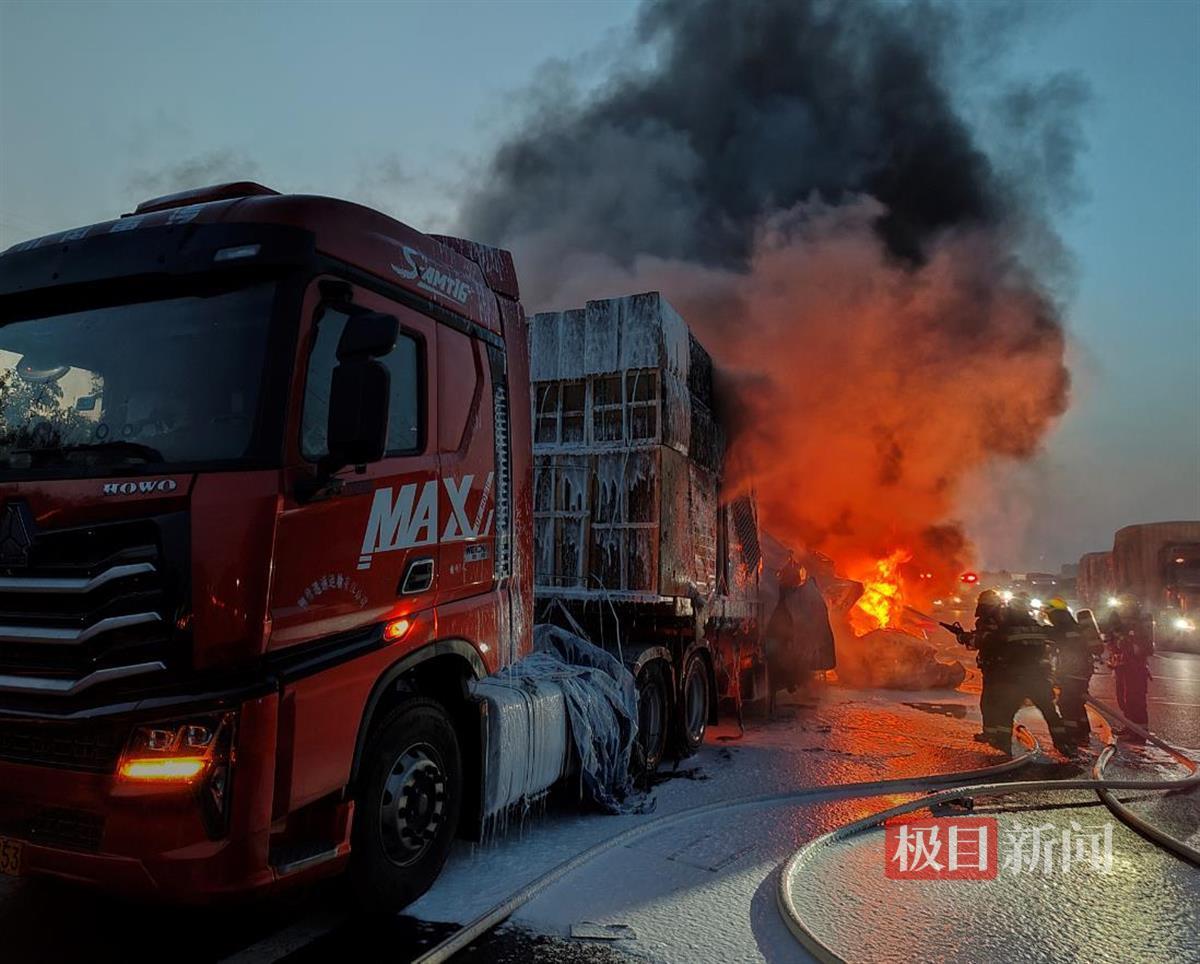 武汉消防提醒:广大驾驶员在行驶前要对车辆的轮胎、发动机、电路和油路进行充分检查,确保它们安全正常运行。货车在长途运输过程中,应间隔3个小时或行驶一段路程后到就近服务区停车休息,同时检查轮胎温度和气压,以免汽车轮胎因长时间摩擦生热起火。如遇紧急情况,请第一时间拨打119报警。