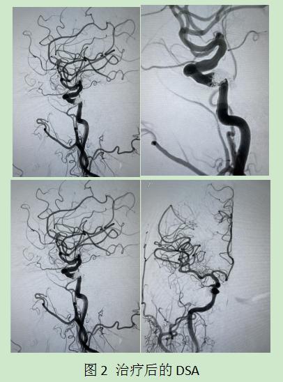 由于病例少见,治疗团队在黄涛主任和张迎光副主任医师主持下进行讨论,决定使用神经介入微创手术治疗该患者。手术由陈发军医师主刀,采用“弹簧圈+ONYX胶栓塞”技术,术中完全栓塞瘘口,手术顺利。术后,患者眼球红肿明显减轻,视力也开始恢复。