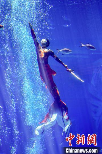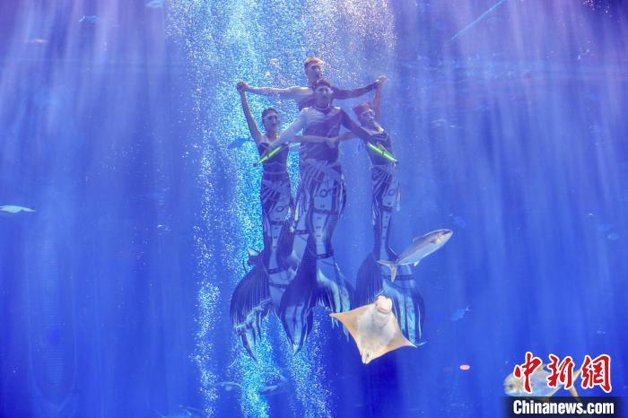 图为参加团体组的深圳南海人鱼团在比赛中。中新网记者 骆云飞 摄